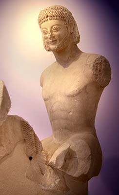 In de Griekse kunst (tot ca 50 na Chr.) zien we een verandering van gestileerde figuren naar zeer gedetailleerde en levensechte uitbeelding van het menselijk lijf. Alhoewel levensecht…. ideale lijven zijn het, waarbij de verhoudingen en/of de spierbundels werden aangepast en overdreven, zodat het allemaal prachtige krachtige mensen (of goden) leken. Het lijkt er wel op dat de beelden met hoofd gemaakt werden. Bij één beeld is nog het gat te zien waar de verbinding tussen hoofd en nek heeft gezeten. Beelden konden vaak niet uit 1 stuk gehakt worden en werden op die manier samengesteld.
