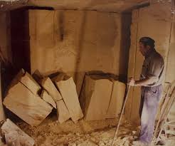 foto 1 en 2: dhr. Kleijnen sr., blokbreker aan het werk in de Sibbergroeve Mergelbouwsteen Kleijnen