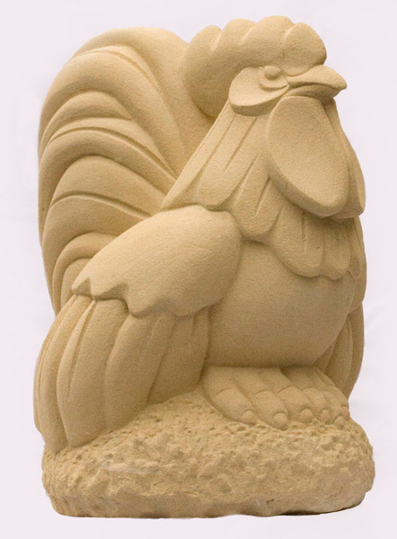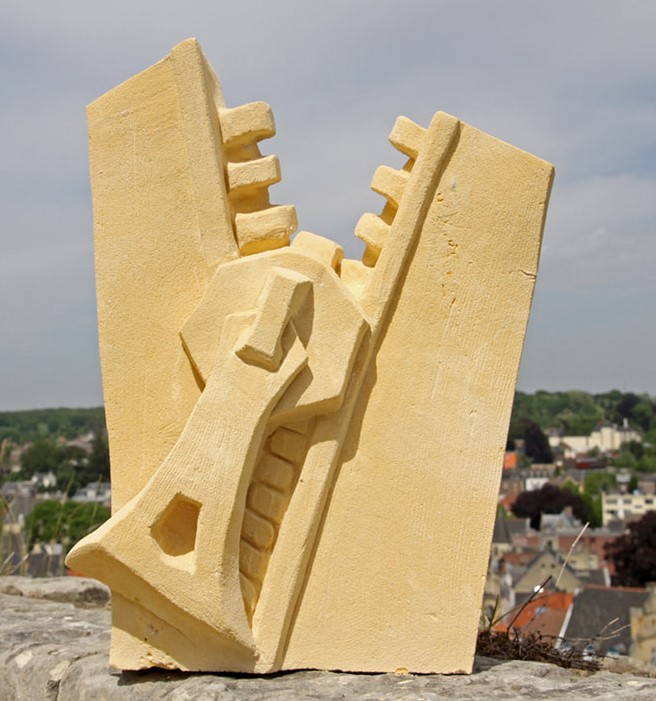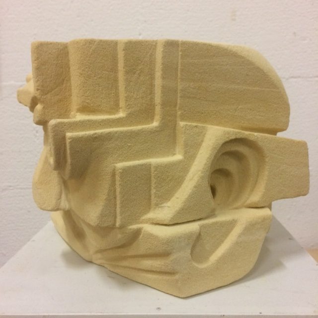 Maar zeker ook als definitief beeld. Je kunt er zo gezegd alle kanten mee op. Je kunt het gemakkelijk zagen, raspen en als je wilt voorzichtig hakken met een beitel. Je hebt geen kracht nodig. Het is prachtig van kleur. Het kan buiten staan. Het vormt zich goed en snel, rond – recht – hol – bol – figuratief of abstract, geen probleem.
